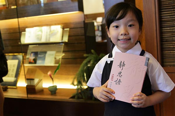 | 《靜思語》裡的許多智慧話語,小志工林鈺軒推薦時也能提出自己的見解, 讓許多書軒客人相當驚艷。 |
