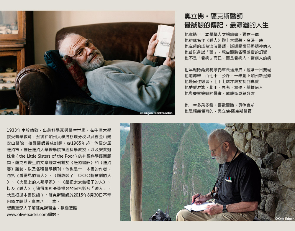 薩克斯所寫的不只是一位醫師對醫學與科學的理解,更是對他的病人最真摯深刻的同情。