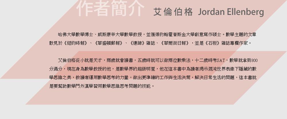 你會明白做決策得先明白自己的立足點、你將學會用數學來撥正錯誤的直覺、看清真正的趨勢。